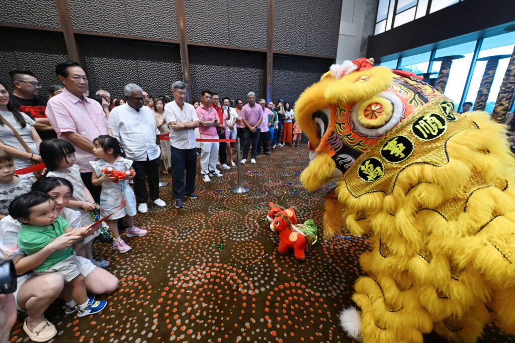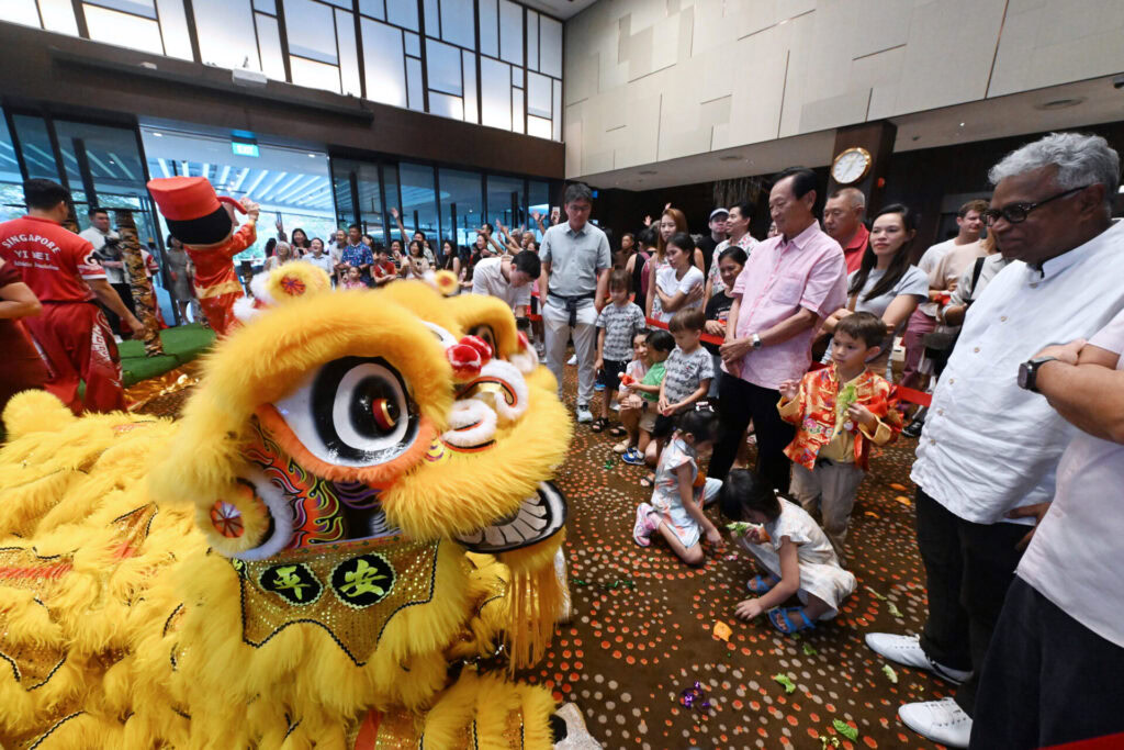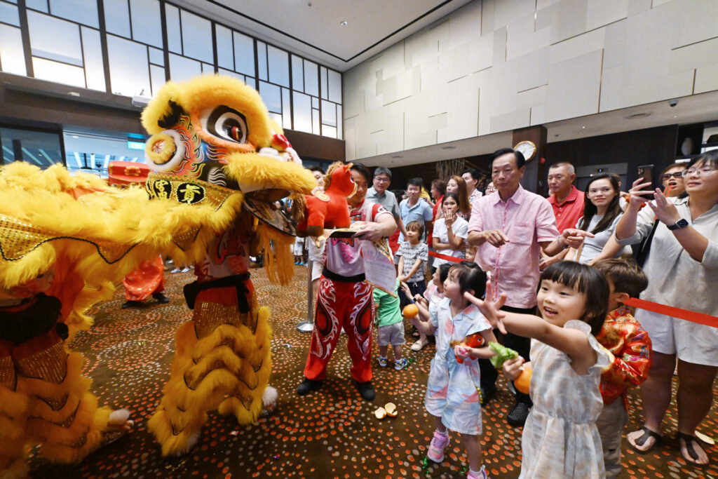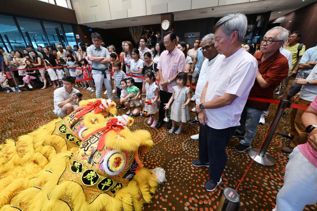 Members of the General Committee lined up to receive auspicious couplets from the lions — a customary gesture signifying blessings of harmony, wealth and success for the new year.